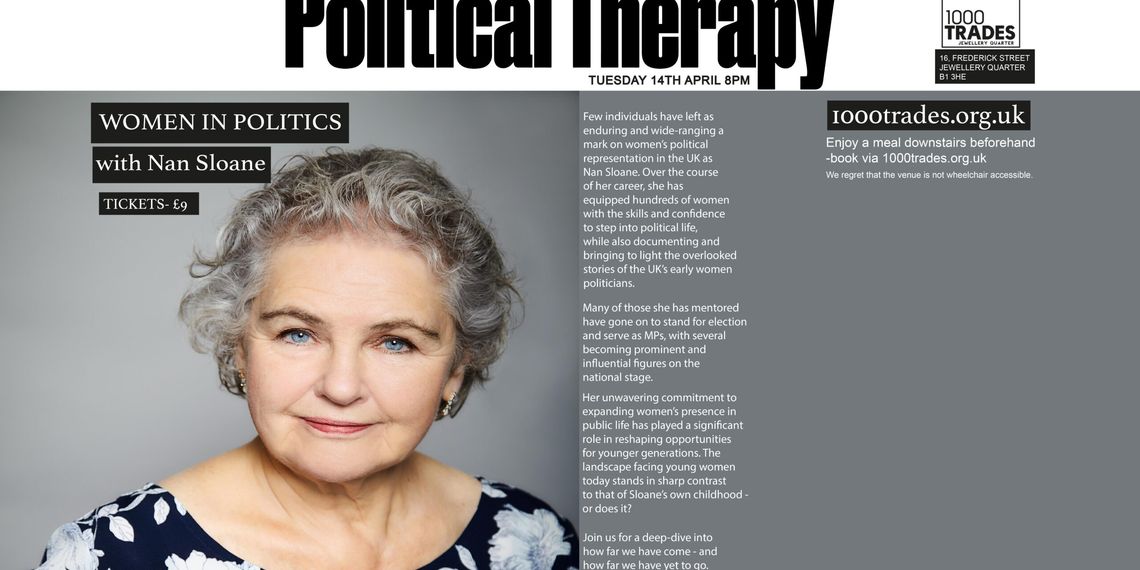 Few individuals have left as enduring and wide-ranging a mark on women’s political representation in the UK as Nan Sloane. Over the course of her career, she has equipped hundreds of women with the skills and confidence to step into political life, while also documenting and bringing to light the overlooked stories of the UK’s early women politicians.